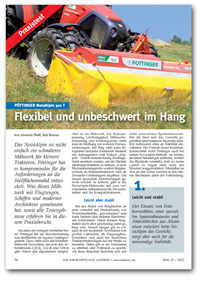 „Der fortschrittliche Landwirt“, das österreichische Fachmagazin hat das Pöttinger-Mähwerk NOVAALPIN 301 T getestet. Das Ergebnis: Das schmälere Mähwerk macht im Steilhang eine gute Figur und Futterfluss und Bodenanpassung sind selbst unter schwierigen Bedingungen hervorragend. Diese und noch mehr Vorzüge können Sie im folgenden Bericht nachlesen.