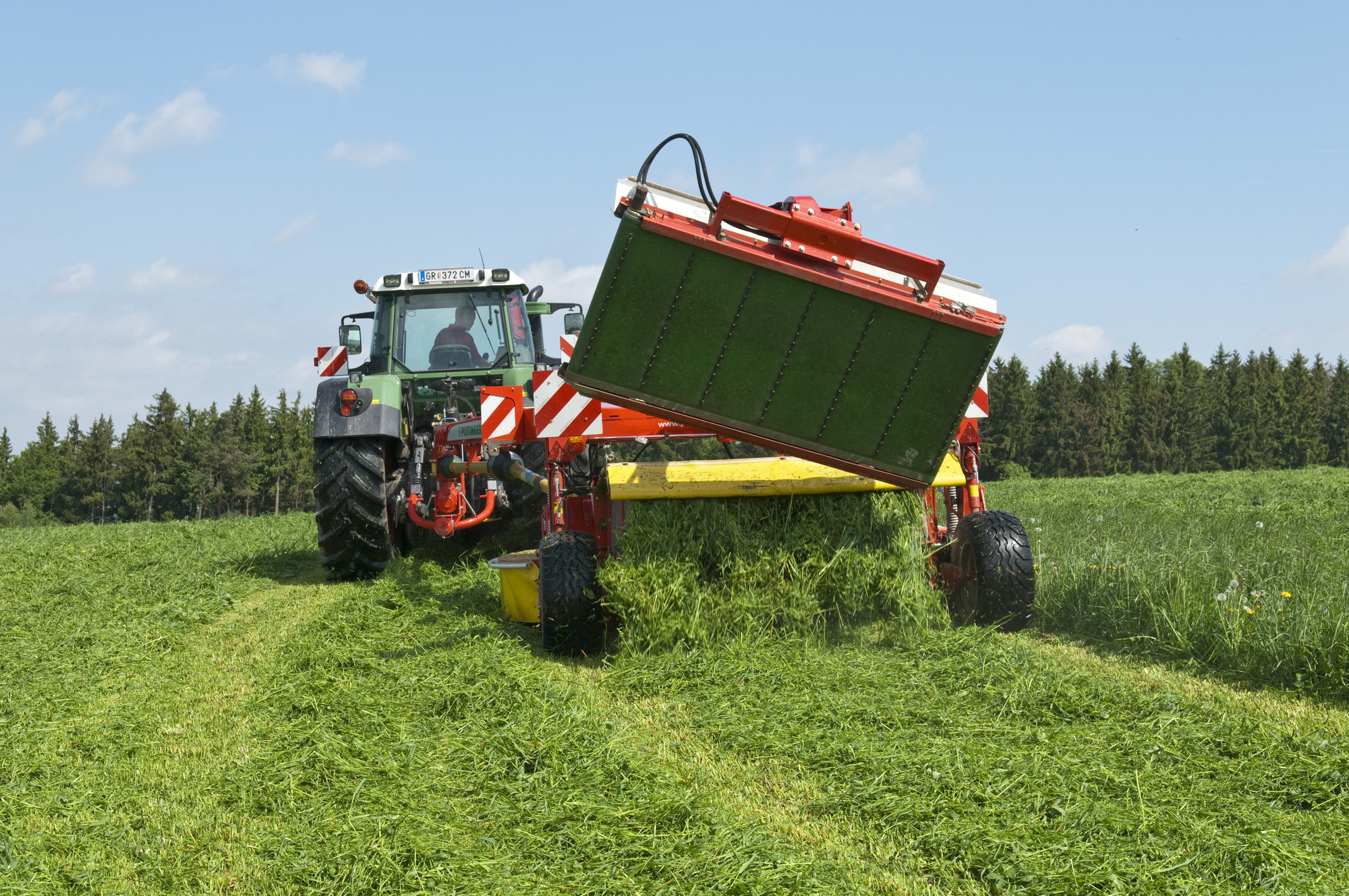 The best spreading quality is achieved when the tedder completely covers the swath of mowed grass on each pass. And ideally, the tractor should drive along a forage-free lane. The forage then remains loose on top of the grass stubble, making it an easy target for the tines.