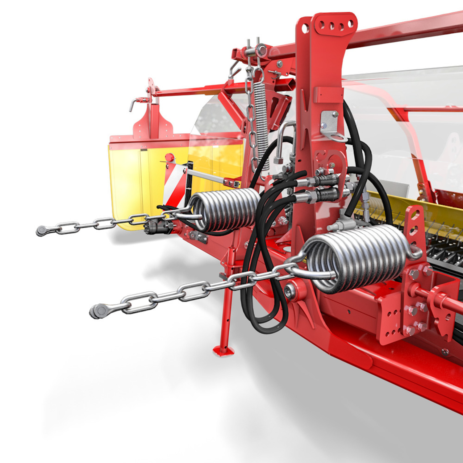 Avec un poids de seulement 575 kg pour une largeur de ramassage de 3,08 m, vous pouvez vous déplacer en toute sécurité sur les pentes raides, même avec des tracteurs légers et des petites faucheuses à deux essieux.